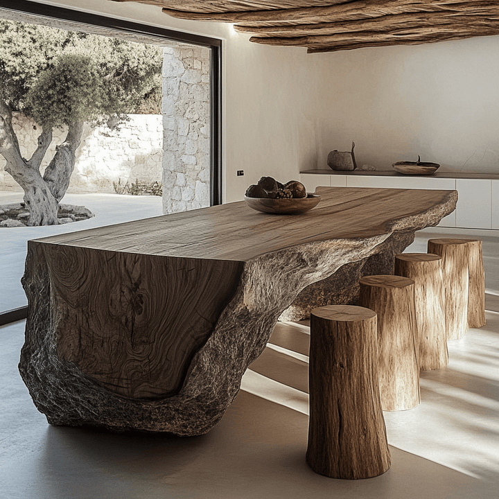 La mesa Kaze es una fusión impresionante de artesanía natural y diseño contemporáneo , tallada a partir de un solo tronco de madera para crear una obra maestra escultural sin fisuras. Al igual que una estatua , cada mesa Kaze es una obra de arte sorprendente, con sus patas integradas que fluyen sin esfuerzo desde los bordes de la mesa, creando una forma fluida y unificada. Este diseño minimalista pero audaz hace de la mesa Kaze una pieza central que llama la atención en hogares modernos , restaurantes , hoteles y espacios boutique .