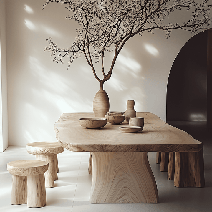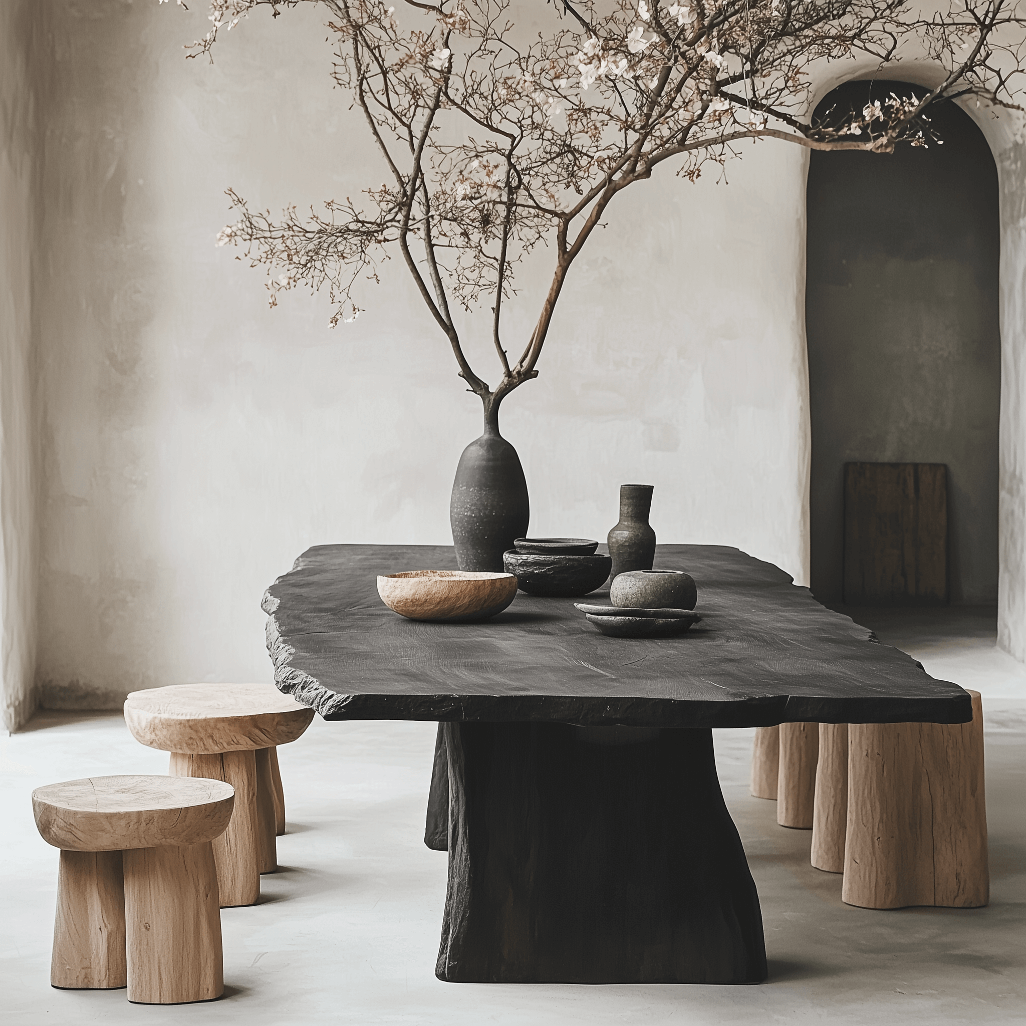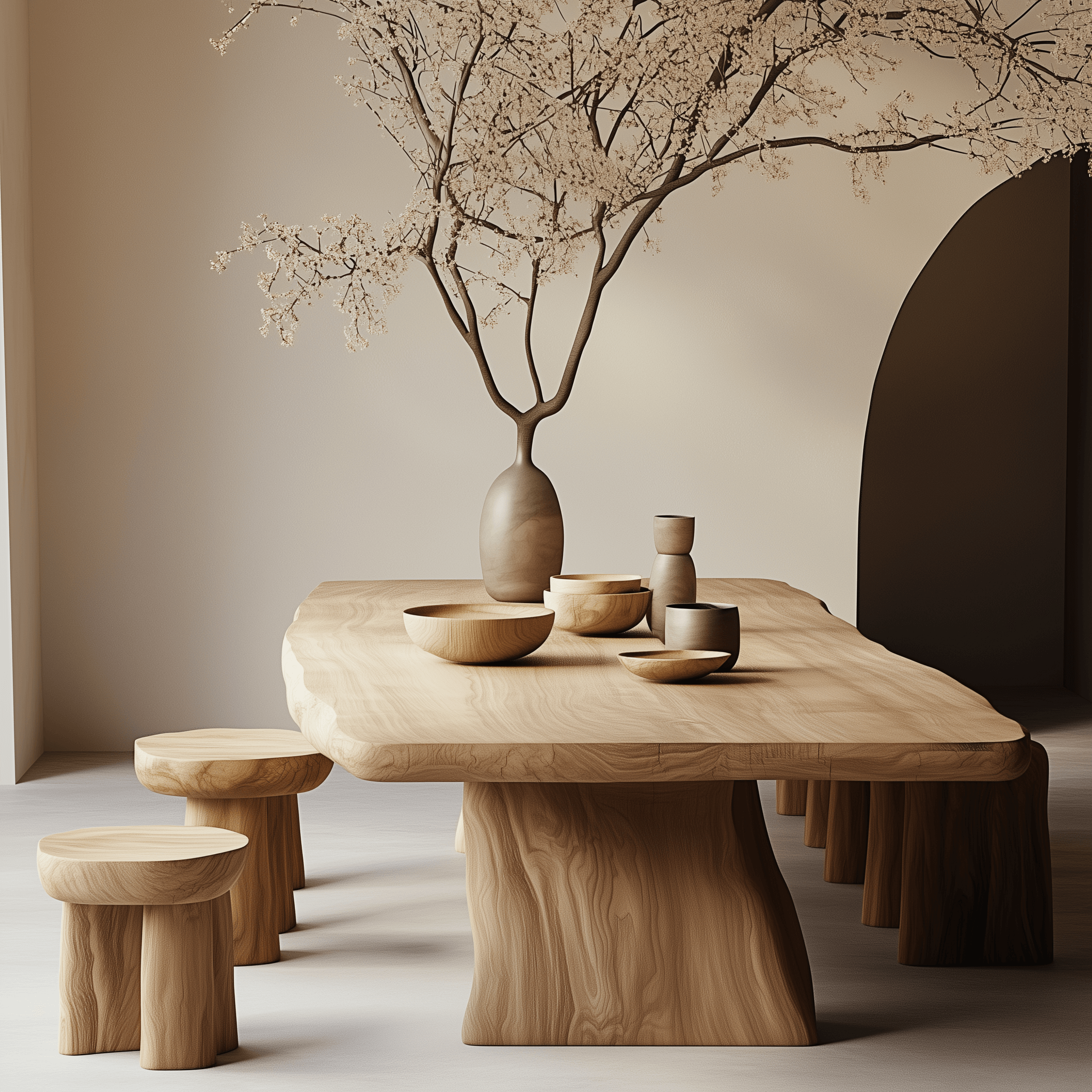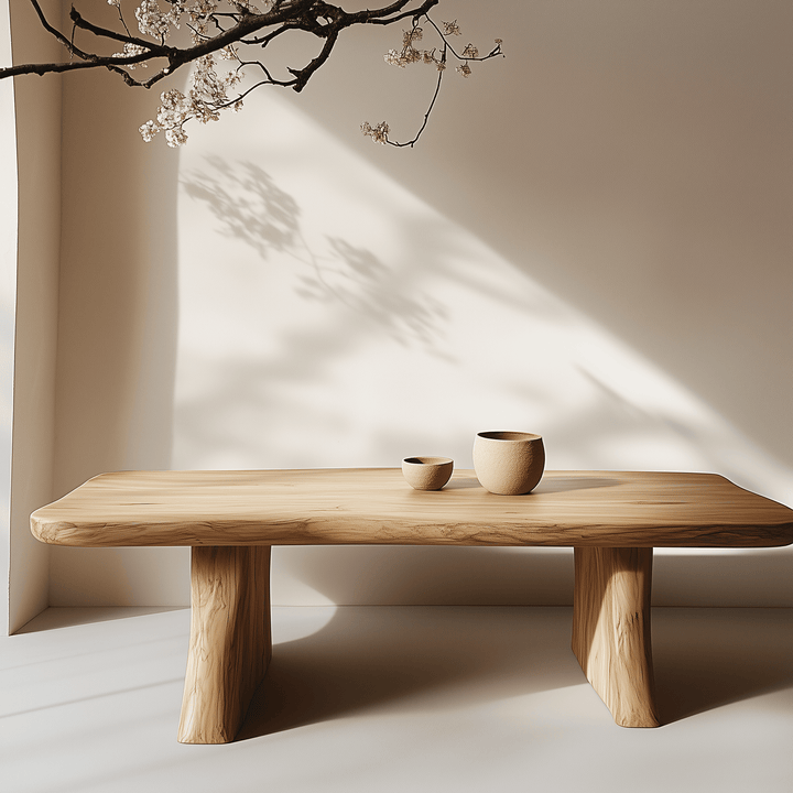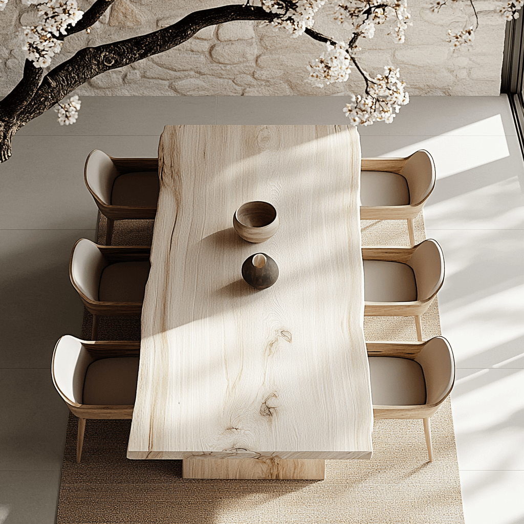 With its solid block legs and minimalist design, the Hikari Table blends modern minimalism with Japanese-inspired craftsmanship. The natural variations in the wood, including the grain patterns and edges, create an artistic, organic feel. The hand-finished edges ensure that every table is a work of art, with subtle differences that give each piece its own character. Expect natural variation in the material and edging as a hallmark of its authenticity.