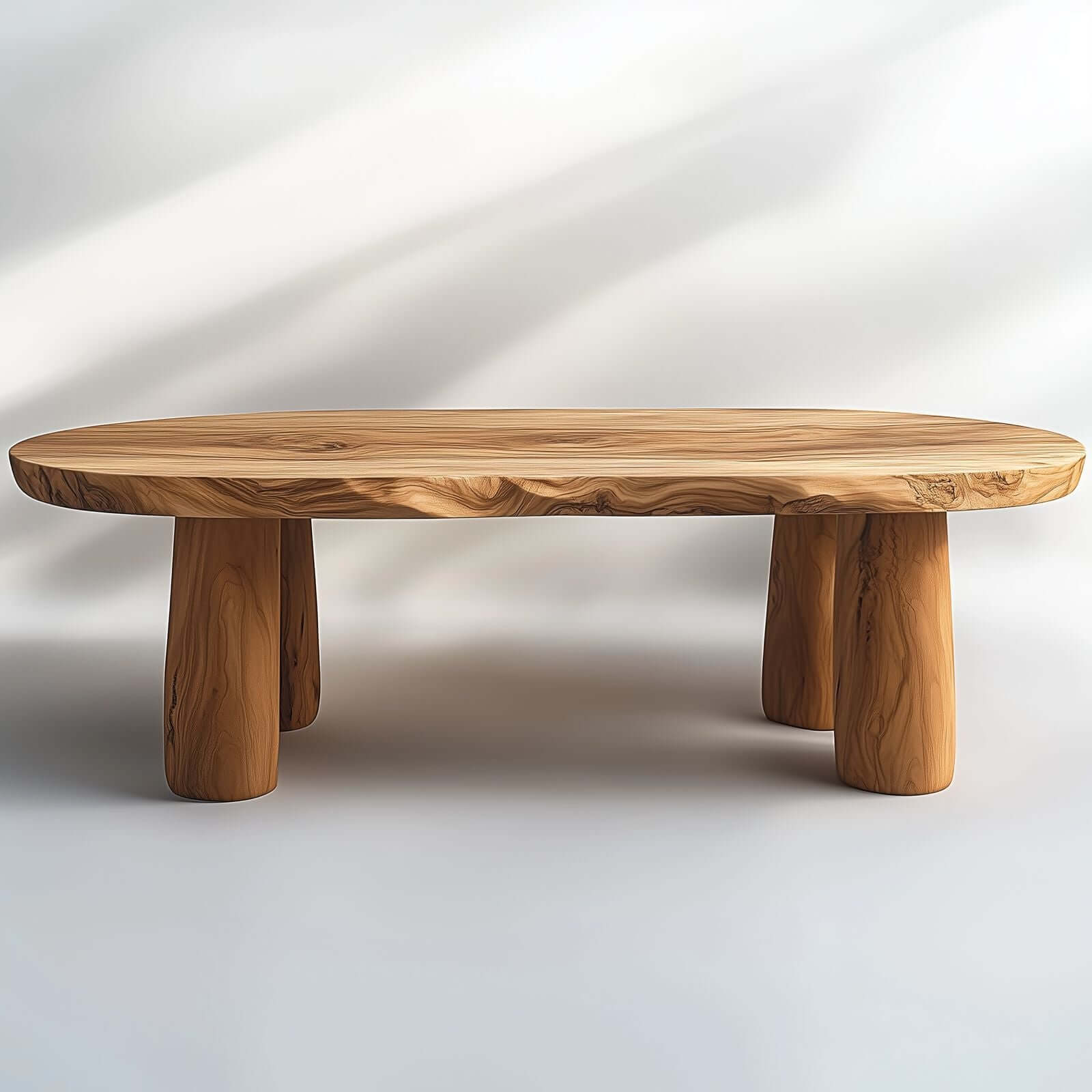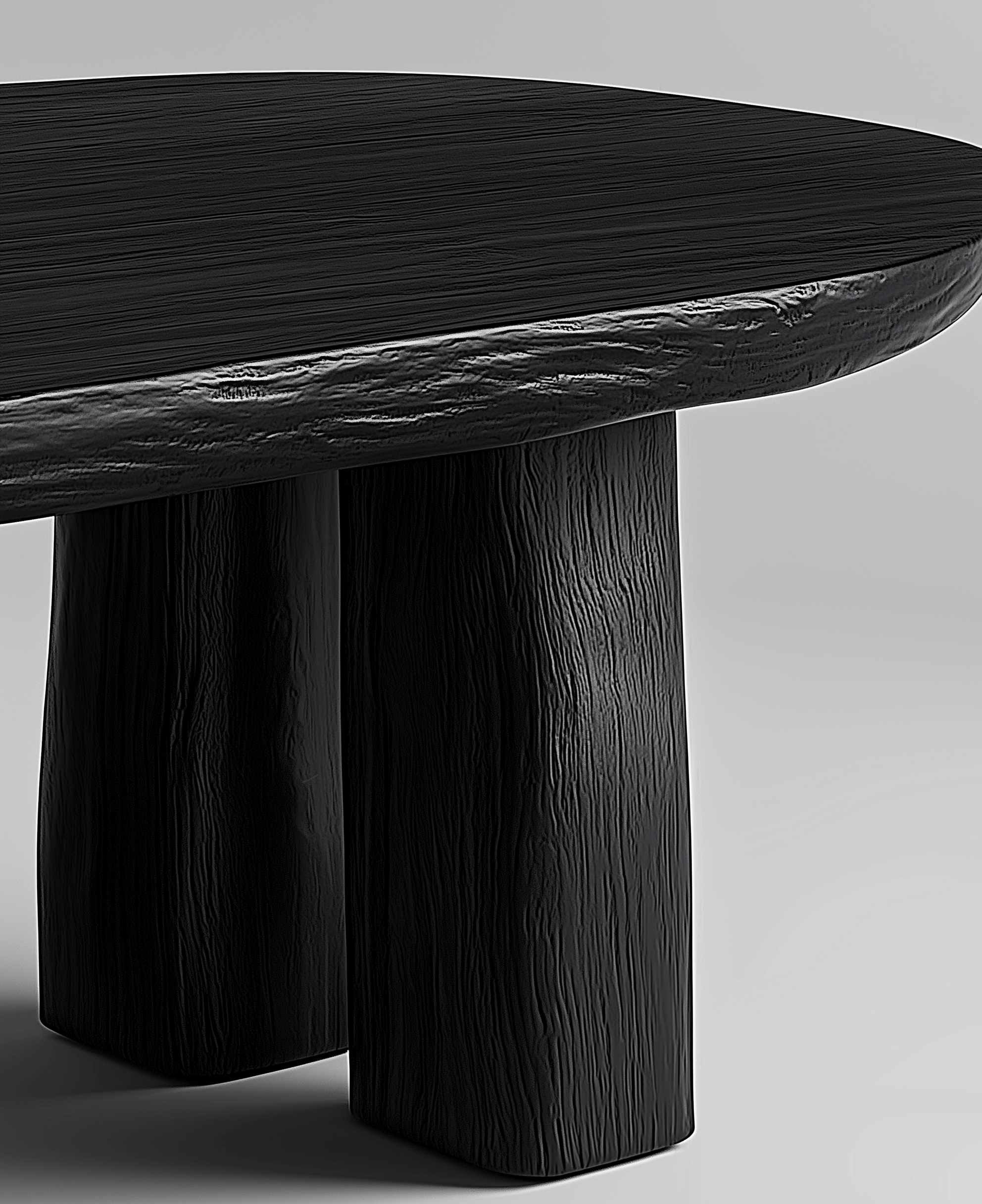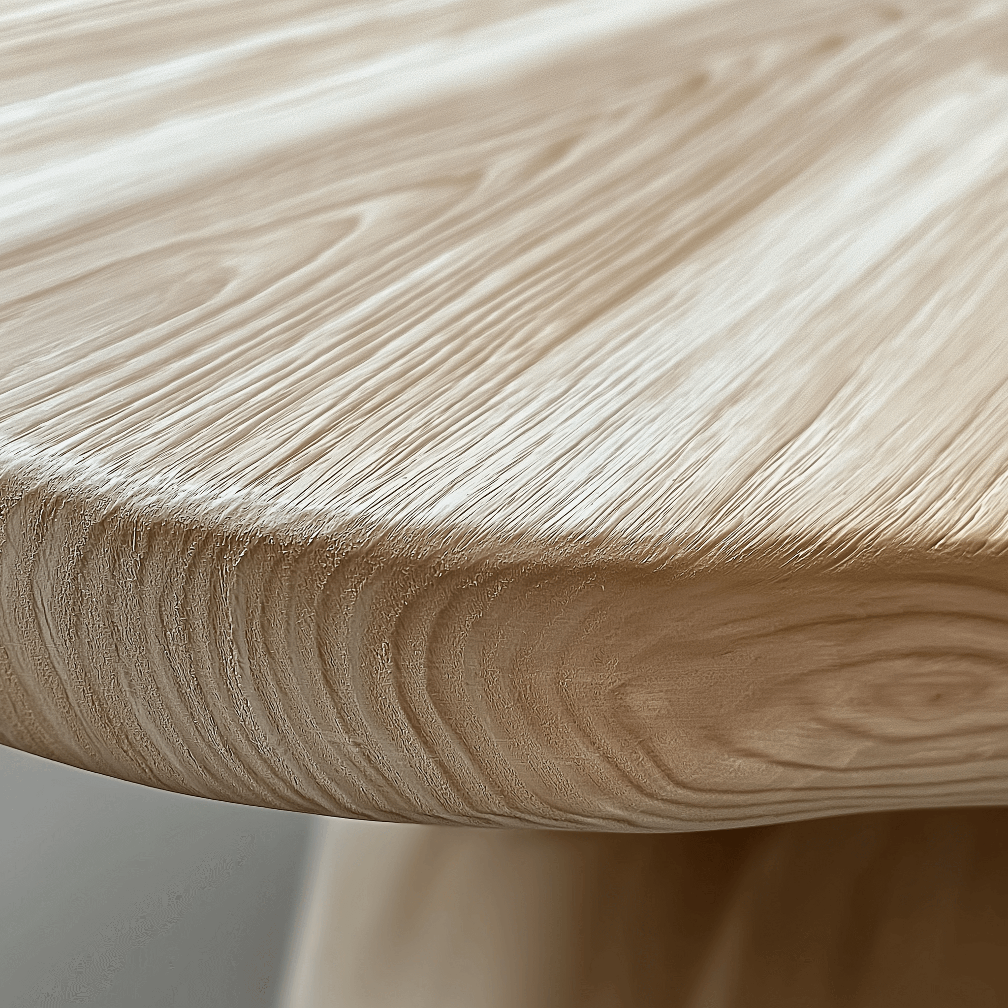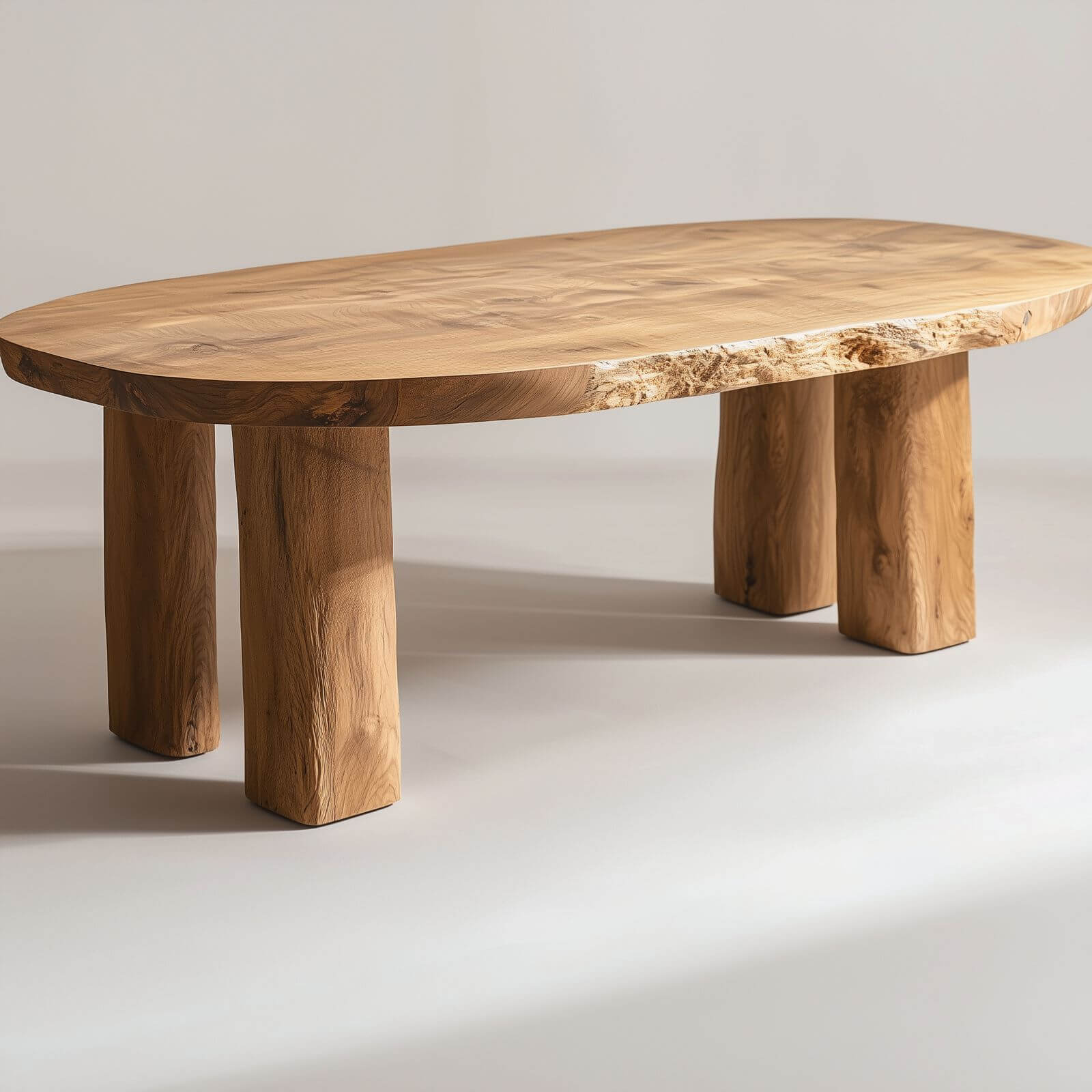 Crafted from a single uninterrupted slab of wood, the Mizu Oval Table maintains its natural variations in length and width, with size fluctuations of +/- 5 cm due to the organic nature of the material and the hand-finishing process.