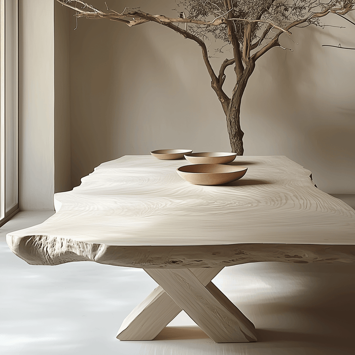 Yama Table – Organic Design with Cross-Leg Wooden Base for a Bold Statement