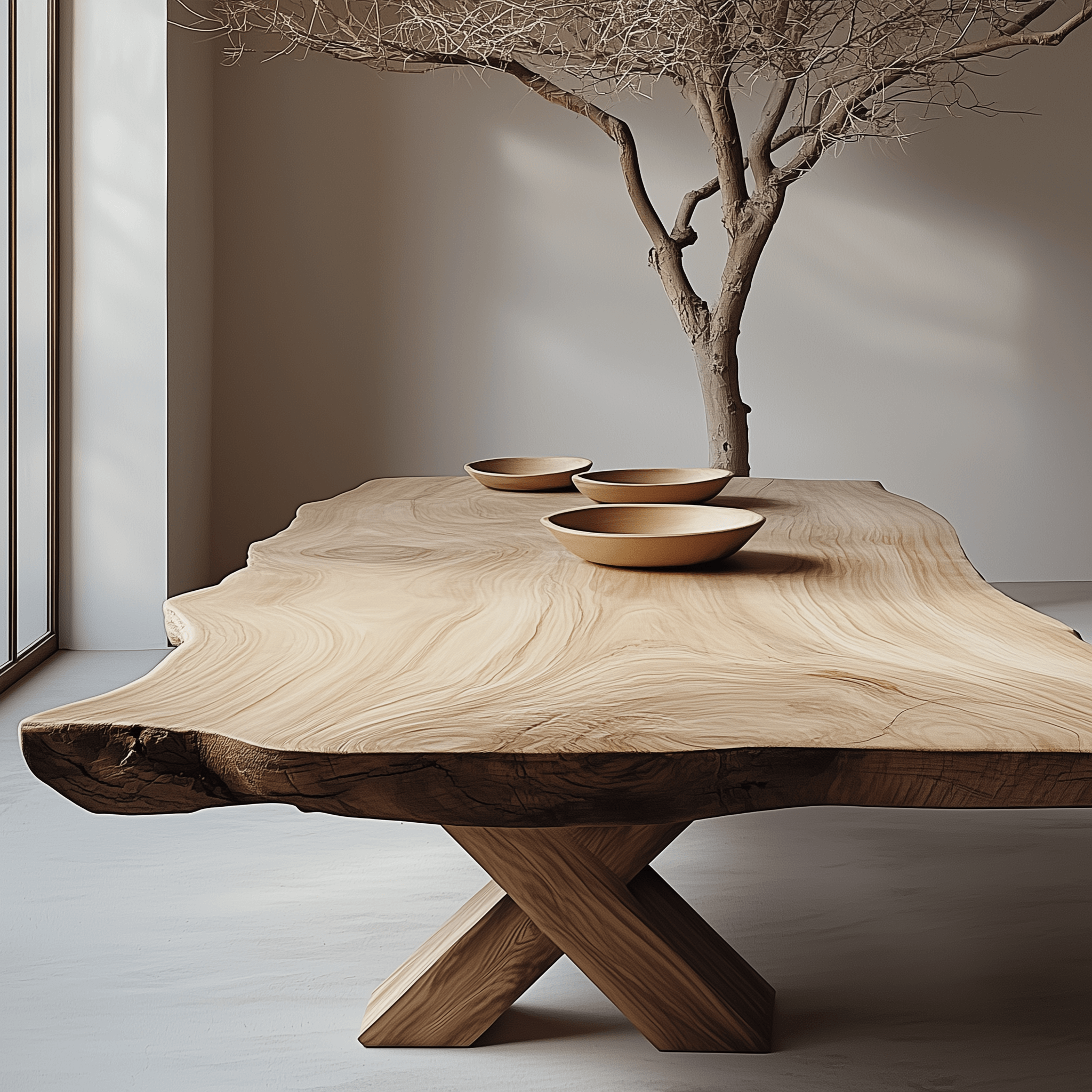 The Yama Organic Table is a bold fusion of natural beauty and contemporary design, crafted from a single uninterrupted slab of wood and featuring the distinctive cross-legged base that sets it apart. This unique architectural base not only provides visual interest but also offers functional support, making the Yama Organic Table a stunning centerpiece for private homes, restaurants, hotels, and upscale commercial spaces.