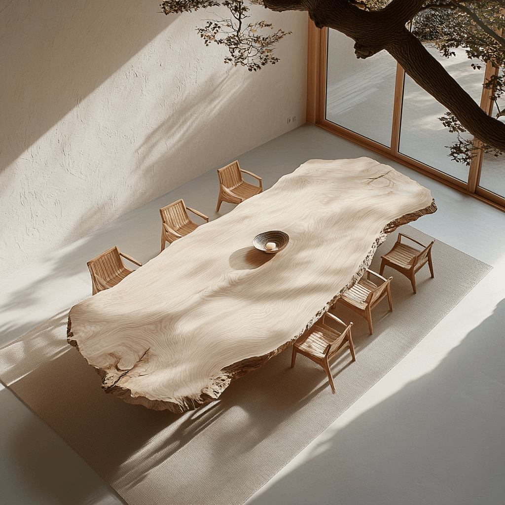 - Crafted from a single uninterrupted slab of wood, retaining natural grain patterns and imperfections
