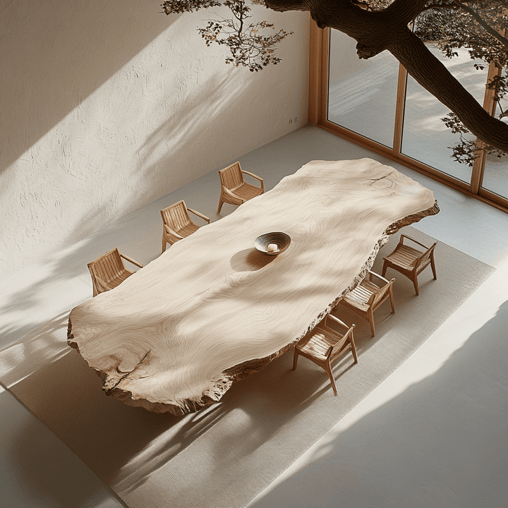 The Yama Organic Table comes in a variety of finishes to suit diverse interior styles. The natural wood finish highlights the grain and texture of the wood, perfect for those seeking an earthy, organic feel. The sleek black finish adds a modern edge, ideal for urban or industrial spaces, while the bleached white finish offers a light, Mediterranean-inspired aesthetic for coastal homes or sunlit spaces.