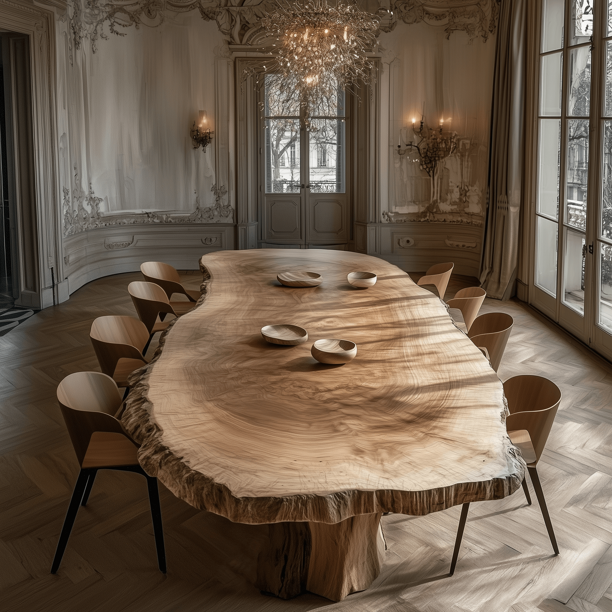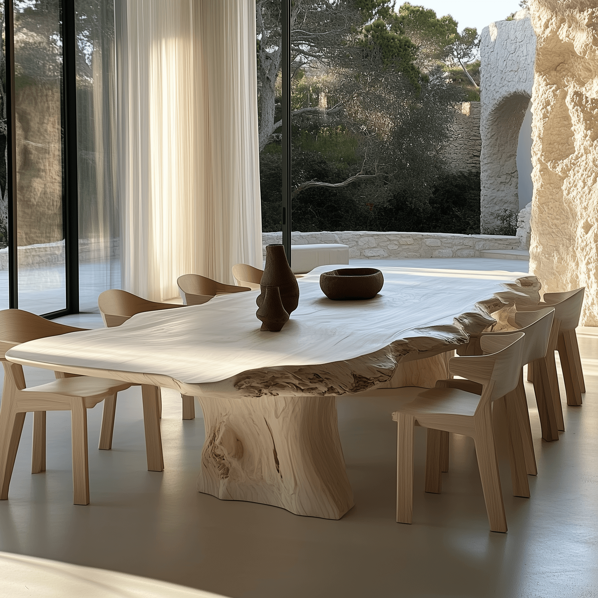 Rin Table with Dual Natural Log Base – Organic Elegance for Modern Spaces