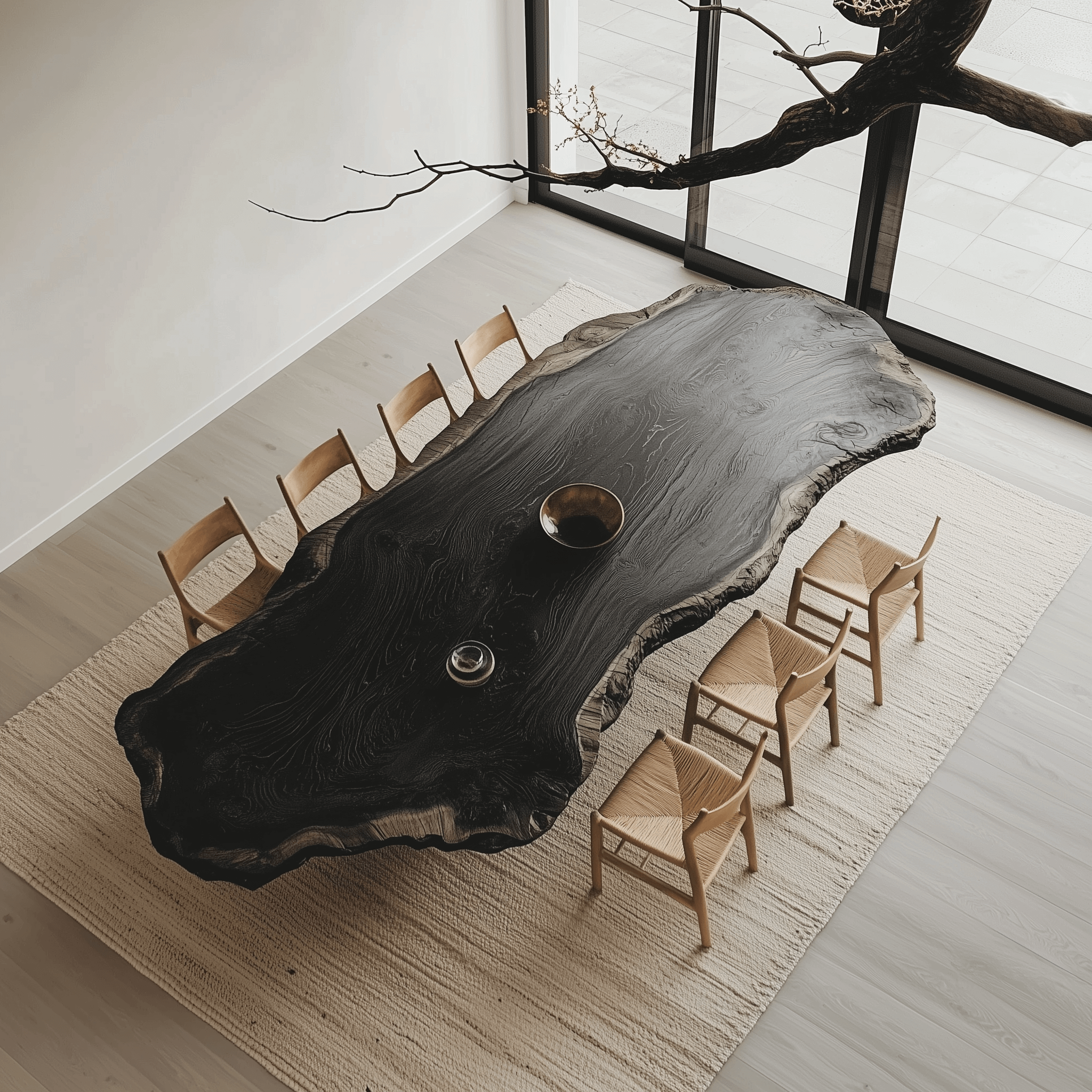 The Hikari dining table comes in three stunning shapes: oval, rectangular, and organic, offering versatility to suit any space. Choose from three elegant finishes: natural matt, charcoal black, or bleached white. The Hikari table's bold block legs and geometric design blend modern minimalism with Japanese-inspired craftsmanship, making it a striking centerpiece for any dining area. Its clean lines and balanced structure emphasize strength and sophistication, perfect for those who value style and functionality.