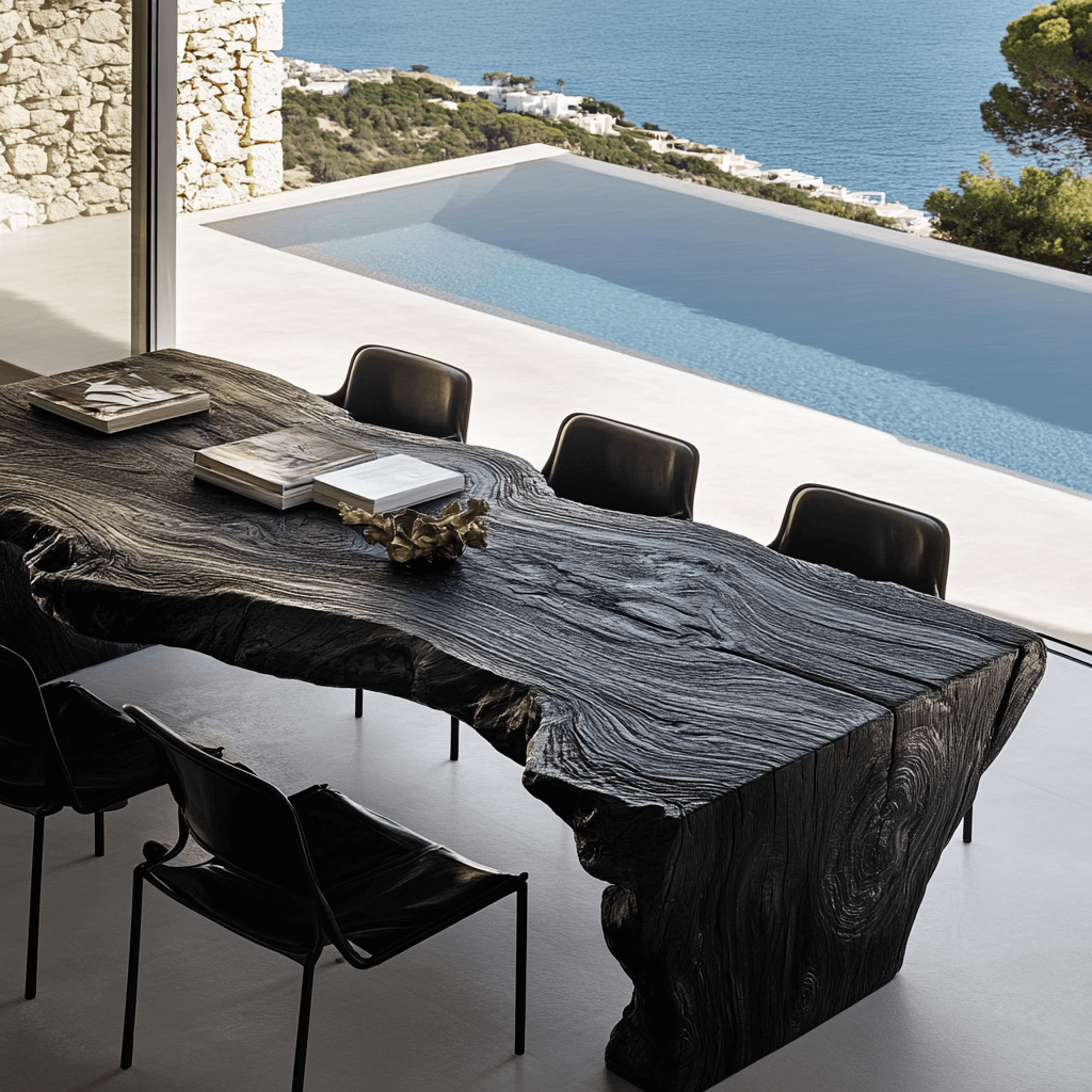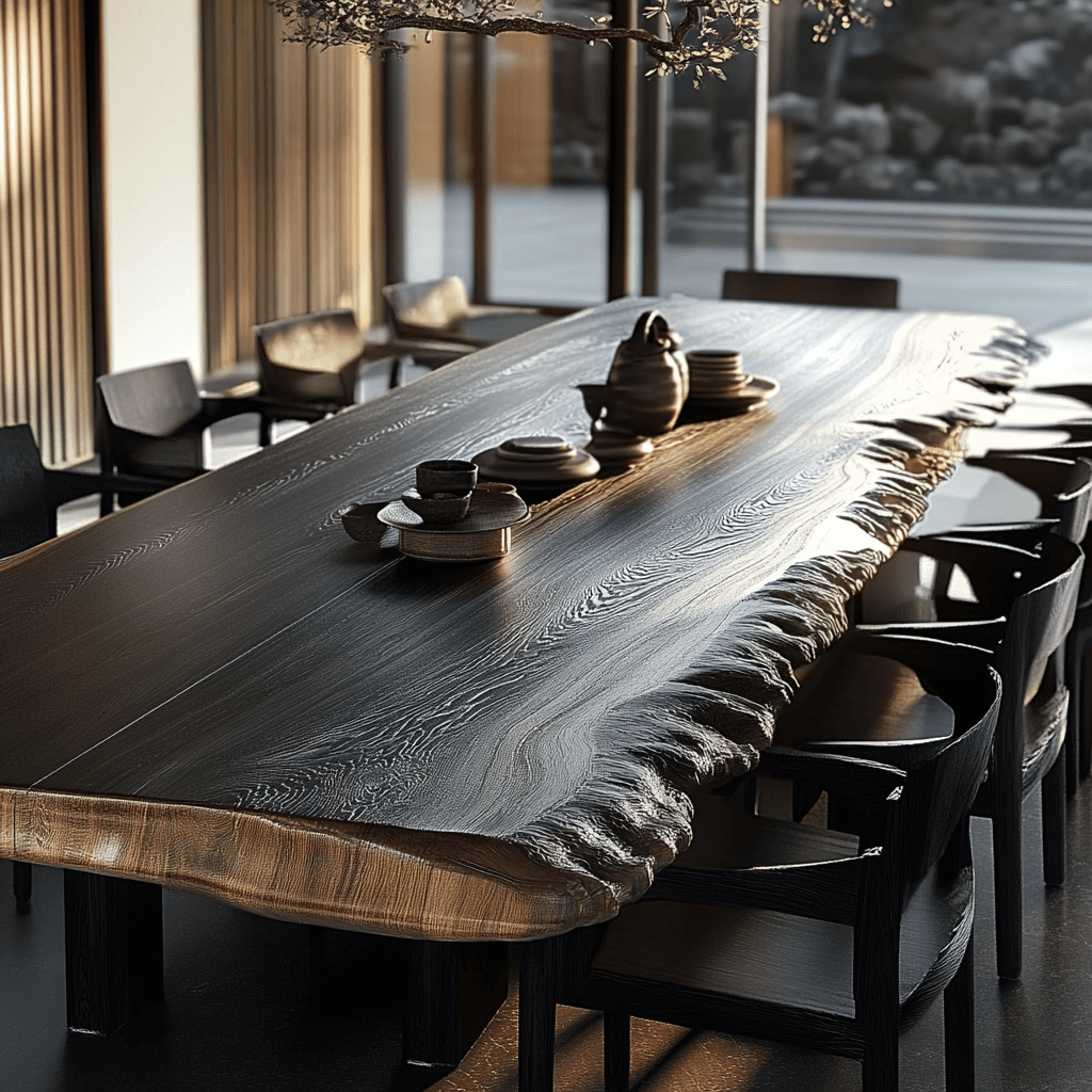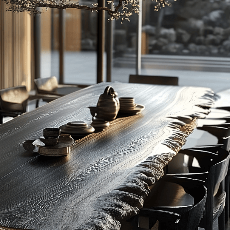 The Mizu dining table offers a blend of sleek modern design and natural elegance, available in round, square, and rectangular shapes. Choose from three sophisticated finishes: natural wood, deep charcoal, or soft bleached tones. The Mizu table’s minimalist silhouette and slim legs create a refined yet sturdy look, inspired by Japanese aesthetics. With its clean, fluid lines and balanced proportions, the Mizu table is perfect for adding understated elegance to any dining room, offering both style and practicality